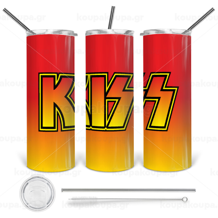 KISS, Tumbler ποτήρι θερμό από ανοξείδωτο ατσάλι 600ml, με μεταλλικό καλαμάκι & βούρτσα καθαρισμού