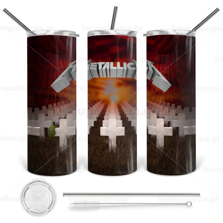 Metallica master of puppets cover, Tumbler ποτήρι θερμό από ανοξείδωτο ατσάλι 600ml, με μεταλλικό καλαμάκι & βούρτσα καθαρισμού