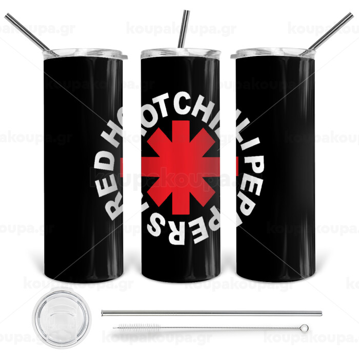 Red Hot Chili Peppers, Tumbler ποτήρι θερμό από ανοξείδωτο ατσάλι 600ml, με μεταλλικό καλαμάκι & βούρτσα καθαρισμού