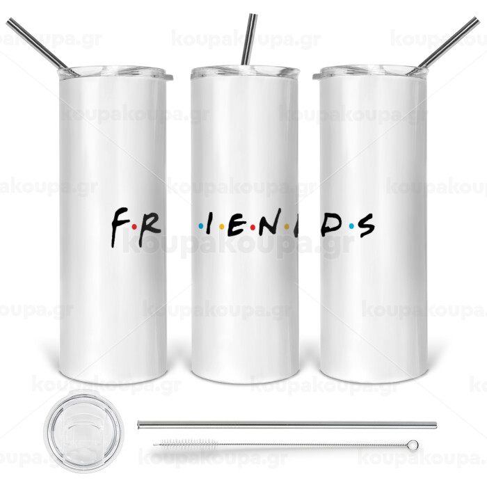 Friends, Tumbler ποτήρι θερμό από ανοξείδωτο ατσάλι 600ml, με μεταλλικό καλαμάκι & βούρτσα καθαρισμού