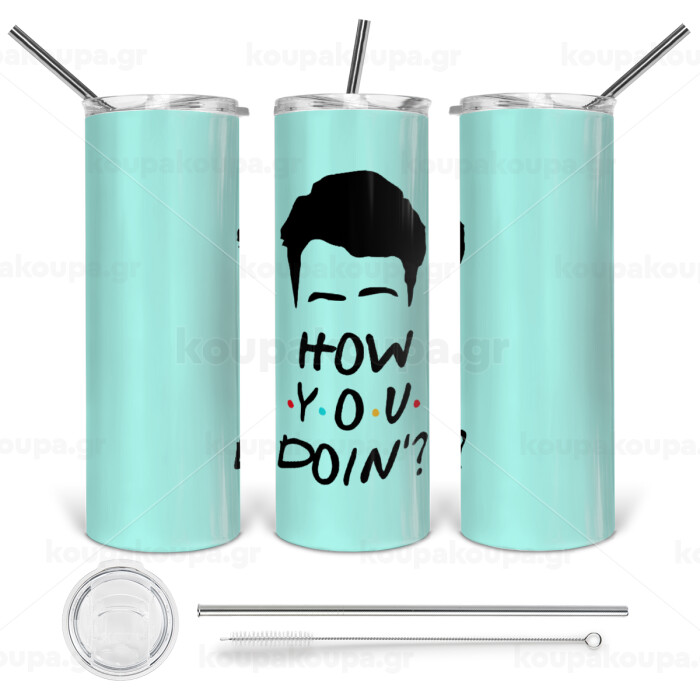 Friends how you doin?, Tumbler ποτήρι θερμό από ανοξείδωτο ατσάλι 600ml, με μεταλλικό καλαμάκι & βούρτσα καθαρισμού