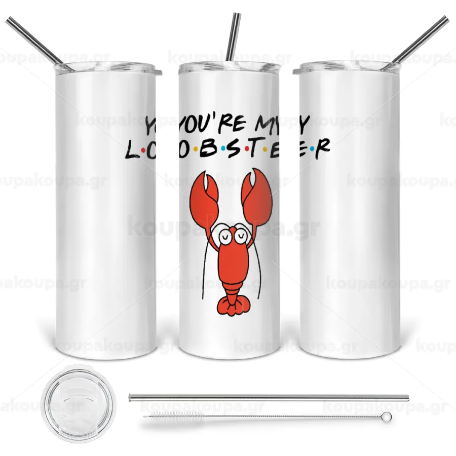 Friends you're my lobster, Tumbler ποτήρι θερμό από ανοξείδωτο ατσάλι 600ml, με μεταλλικό καλαμάκι & βούρτσα καθαρισμού