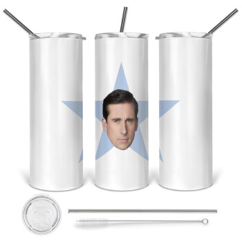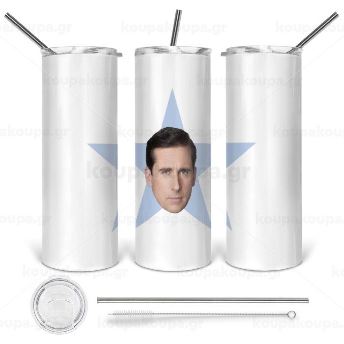 michael the office star, Tumbler ποτήρι θερμό από ανοξείδωτο ατσάλι 600ml, με μεταλλικό καλαμάκι & βούρτσα καθαρισμού