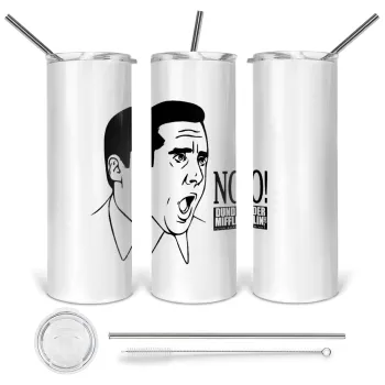 The office Michael NO!!!, Tumbler ποτήρι θερμό από ανοξείδωτο ατσάλι 600ml, με μεταλλικό καλαμάκι & βούρτσα καθαρισμού