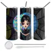 Wednesday big eyes, Tumbler ποτήρι θερμό από ανοξείδωτο ατσάλι 600ml, με μεταλλικό καλαμάκι & βούρτσα καθαρισμού