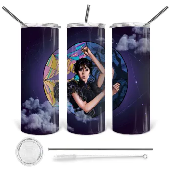Wednesday dance, Tumbler ποτήρι θερμό από ανοξείδωτο ατσάλι 600ml, με μεταλλικό καλαμάκι & βούρτσα καθαρισμού