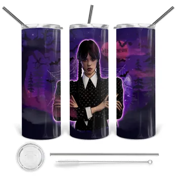 Wednesday moonlight, Tumbler ποτήρι θερμό από ανοξείδωτο ατσάλι 600ml, με μεταλλικό καλαμάκι & βούρτσα καθαρισμού