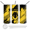 FC Α.Ε.Κ., Tumbler ποτήρι θερμό από ανοξείδωτο ατσάλι 600ml, με μεταλλικό καλαμάκι & βούρτσα καθαρισμού