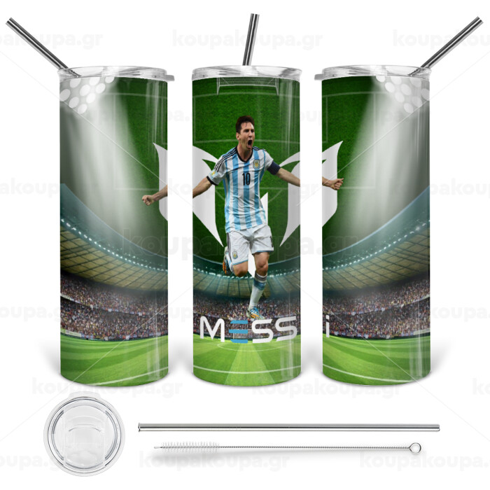 Λιονέλ Μέσι, Leo Messi, Tumbler ποτήρι θερμό από ανοξείδωτο ατσάλι 600ml, με μεταλλικό καλαμάκι & βούρτσα καθαρισμού