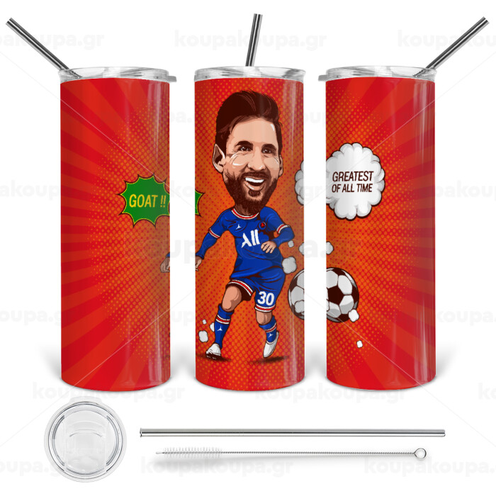 Lionel Messi drawing, Tumbler ποτήρι θερμό από ανοξείδωτο ατσάλι 600ml, με μεταλλικό καλαμάκι & βούρτσα καθαρισμού