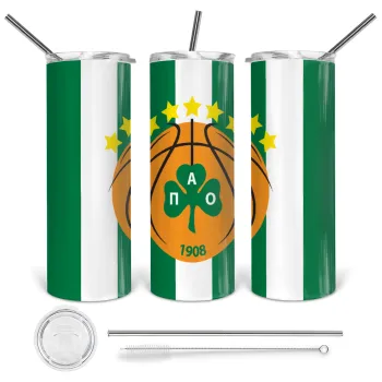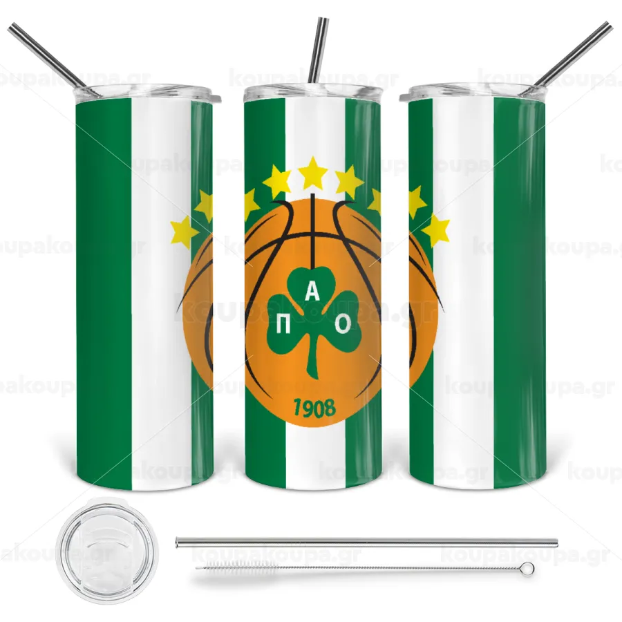 ΠΑΟ BC, Tumbler ποτήρι θερμό από ανοξείδωτο ατσάλι 600ml, με μεταλλικό καλαμάκι & βούρτσα καθαρισμού