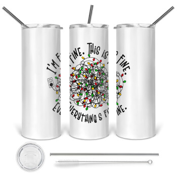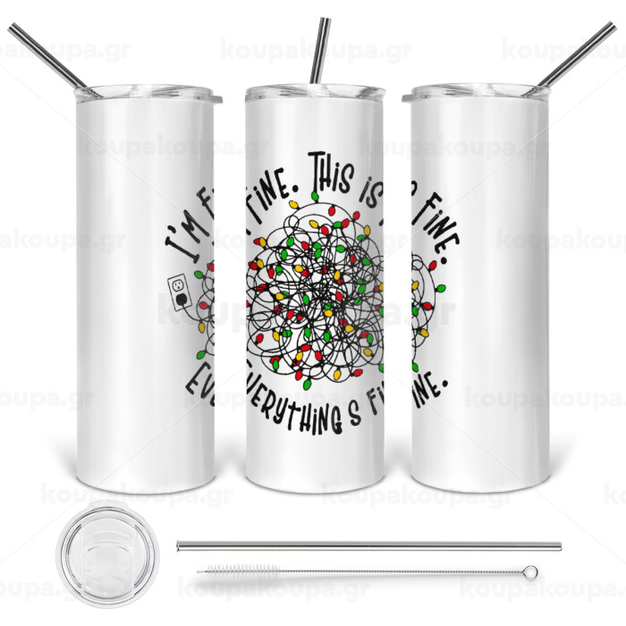 It's Fine I'm Fine Everything Is Fine, Tumbler ποτήρι θερμό από ανοξείδωτο ατσάλι 600ml, με μεταλλικό καλαμάκι & βούρτσα καθαρισμού