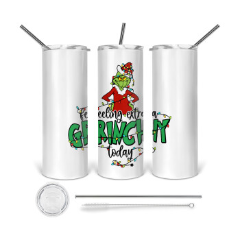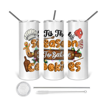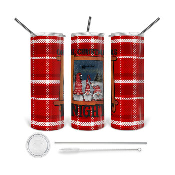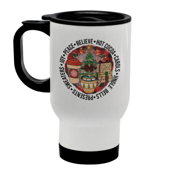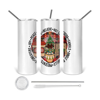 Joy, Peace, Believe, Hot Cocoa, Carols, Tumbler ποτήρι θερμό από ανοξείδωτο ατσάλι 600ml, με μεταλλικό καλαμάκι & βούρτσα καθαρισμού