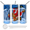 Santa Night, Tumbler ποτήρι θερμό από ανοξείδωτο ατσάλι 600ml, με μεταλλικό καλαμάκι & βούρτσα καθαρισμού