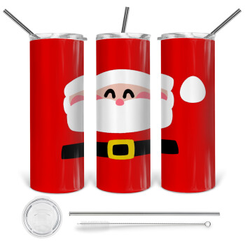 Simple Santa, Tumbler ποτήρι θερμό από ανοξείδωτο ατσάλι 600ml, με μεταλλικό καλαμάκι & βούρτσα καθαρισμού
