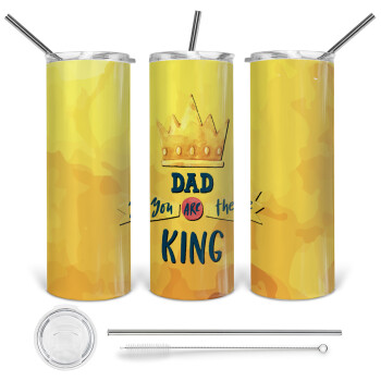 Dad you are the King, Tumbler ποτήρι θερμό από ανοξείδωτο ατσάλι 600ml, με μεταλλικό καλαμάκι & βούρτσα καθαρισμού