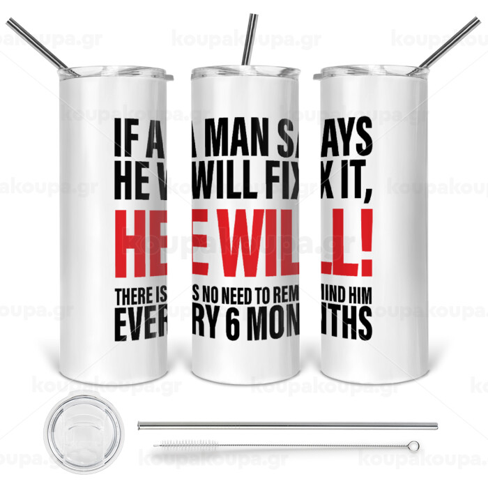 If a man says he will fix it He will There is no need to remind him every 6 months, Tumbler ποτήρι θερμό από ανοξείδωτο ατσάλι 600ml, με μεταλλικό καλαμάκι & βούρτσα καθαρισμού