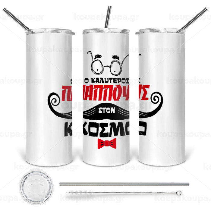 Ο καλύτερος παππούς του κόσμου!, Tumbler ποτήρι θερμό από ανοξείδωτο ατσάλι 600ml, με μεταλλικό καλαμάκι & βούρτσα καθαρισμού