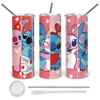 Lilo & Stitch Love, Tumbler ποτήρι θερμό από ανοξείδωτο ατσάλι 600ml, με μεταλλικό καλαμάκι & βούρτσα καθαρισμού