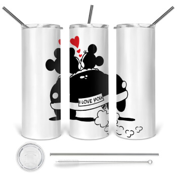 Love Car, Tumbler ποτήρι θερμό από ανοξείδωτο ατσάλι 600ml, με μεταλλικό καλαμάκι & βούρτσα καθαρισμού
