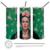 Frida Kahlo, Tumbler ποτήρι θερμό από ανοξείδωτο ατσάλι 600ml, με μεταλλικό καλαμάκι & βούρτσα καθαρισμού