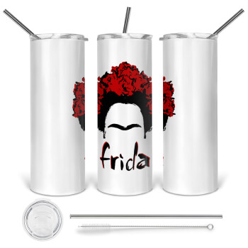 Frida, Tumbler ποτήρι θερμό από ανοξείδωτο ατσάλι 600ml, με μεταλλικό καλαμάκι & βούρτσα καθαρισμού