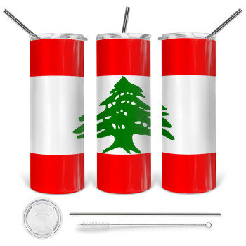 Lebanon flag, Tumbler ποτήρι θερμό από ανοξείδωτο ατσάλι 600ml, με μεταλλικό καλαμάκι & βούρτσα καθαρισμού