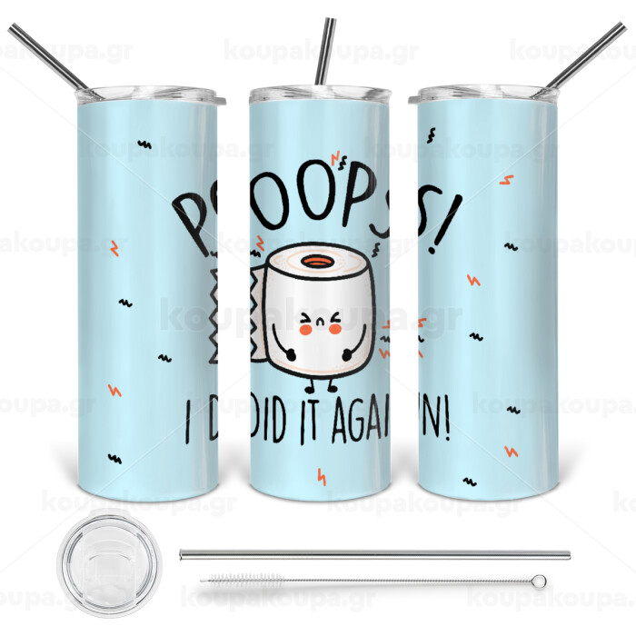 Poops!...I Did It Again, Tumbler ποτήρι θερμό από ανοξείδωτο ατσάλι 600ml, με μεταλλικό καλαμάκι & βούρτσα καθαρισμού
