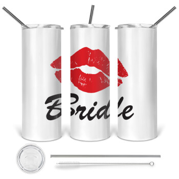 Bride kiss, Tumbler ποτήρι θερμό από ανοξείδωτο ατσάλι 600ml, με μεταλλικό καλαμάκι & βούρτσα καθαρισμού