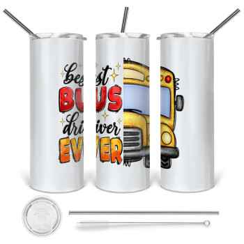 Best bus driver ever!, Tumbler ποτήρι θερμό από ανοξείδωτο ατσάλι 600ml, με μεταλλικό καλαμάκι & βούρτσα καθαρισμού