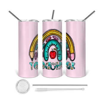 Teacher, Tumbler ποτήρι θερμό από ανοξείδωτο ατσάλι 600ml, με μεταλλικό καλαμάκι & βούρτσα καθαρισμού