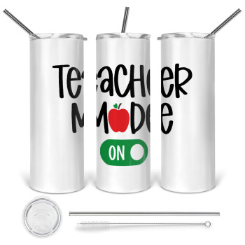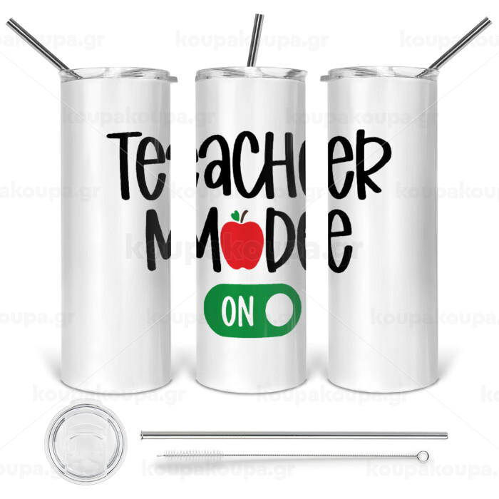 Teacher mode ON, Tumbler ποτήρι θερμό από ανοξείδωτο ατσάλι 600ml, με μεταλλικό καλαμάκι & βούρτσα καθαρισμού