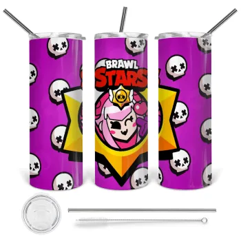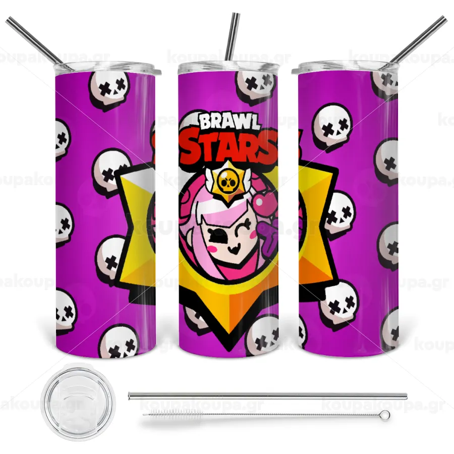 Brawl Stars Melodie, Tumbler ποτήρι θερμό από ανοξείδωτο ατσάλι 600ml, με μεταλλικό καλαμάκι & βούρτσα καθαρισμού