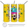FALL GUYS, Tumbler ποτήρι θερμό από ανοξείδωτο ατσάλι 600ml, με μεταλλικό καλαμάκι & βούρτσα καθαρισμού