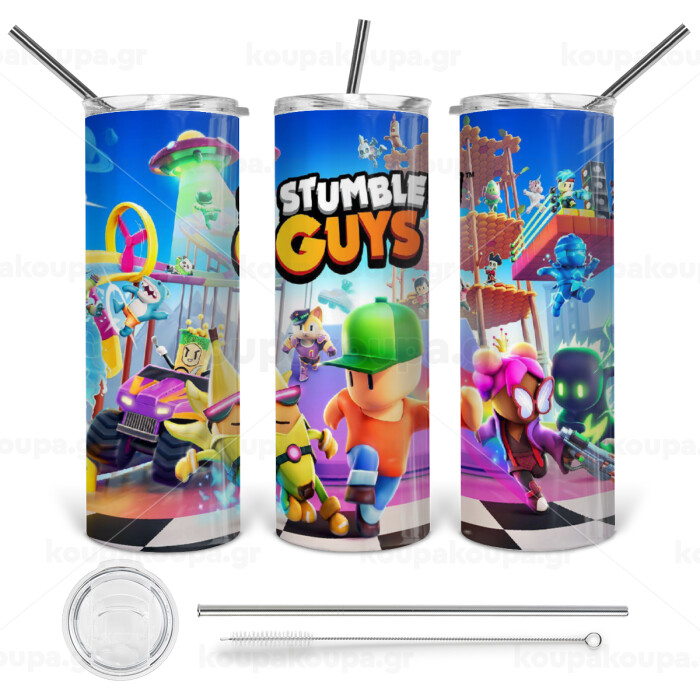 Stumble Guys, Tumbler ποτήρι θερμό από ανοξείδωτο ατσάλι 600ml, με μεταλλικό καλαμάκι & βούρτσα καθαρισμού