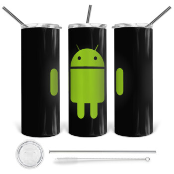 Android, Tumbler ποτήρι θερμό από ανοξείδωτο ατσάλι 600ml, με μεταλλικό καλαμάκι & βούρτσα καθαρισμού
