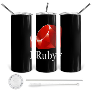 Ruby, Tumbler ποτήρι θερμό από ανοξείδωτο ατσάλι 600ml, με μεταλλικό καλαμάκι & βούρτσα καθαρισμού