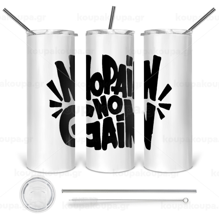 No pain no gain, Tumbler ποτήρι θερμό από ανοξείδωτο ατσάλι 600ml, με μεταλλικό καλαμάκι & βούρτσα καθαρισμού