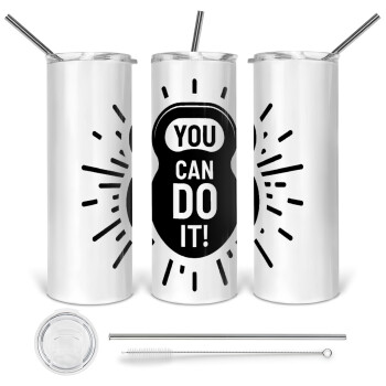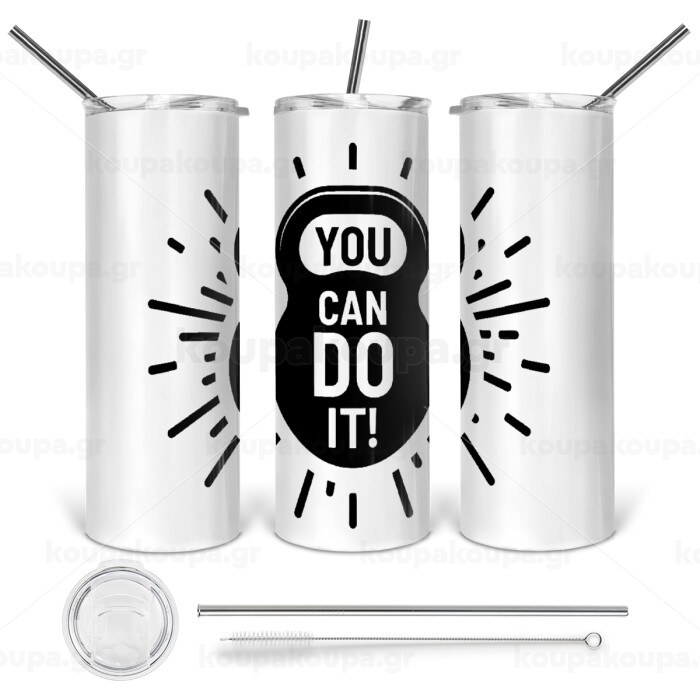 You can do it, Tumbler ποτήρι θερμό από ανοξείδωτο ατσάλι 600ml, με μεταλλικό καλαμάκι & βούρτσα καθαρισμού