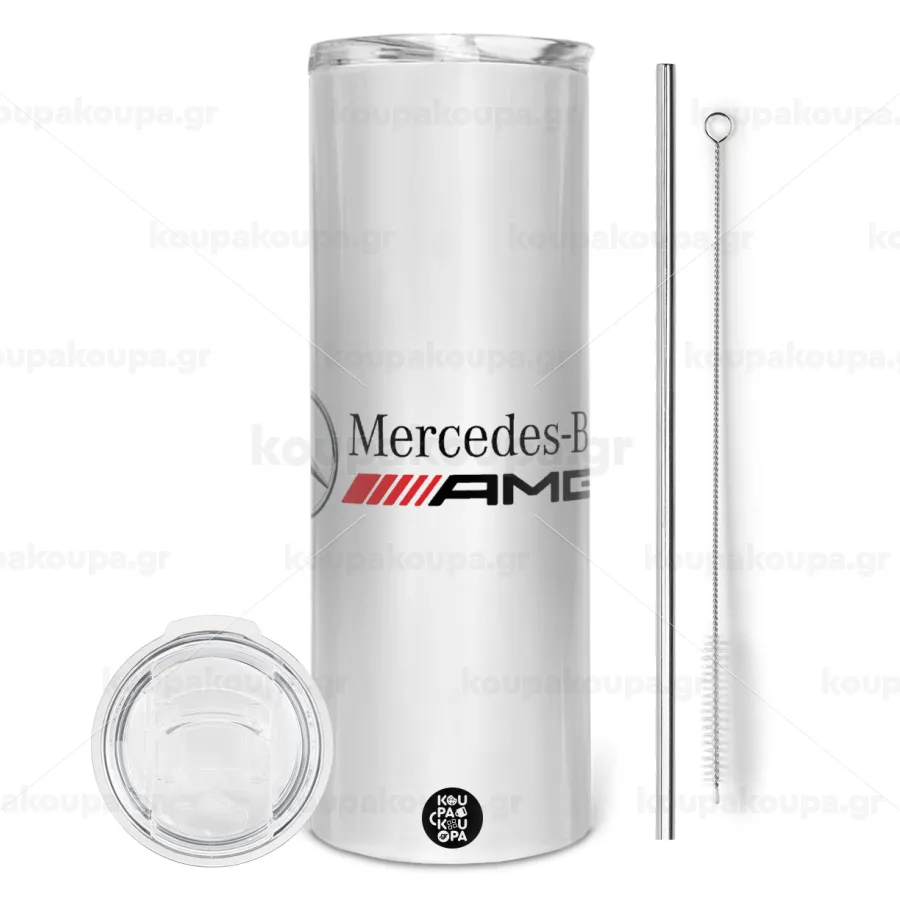 AMG Mercedes, Tumbler ποτήρι θερμό από ανοξείδωτο ατσάλι 600ml, με μεταλλικό καλαμάκι & βούρτσα καθαρισμού
