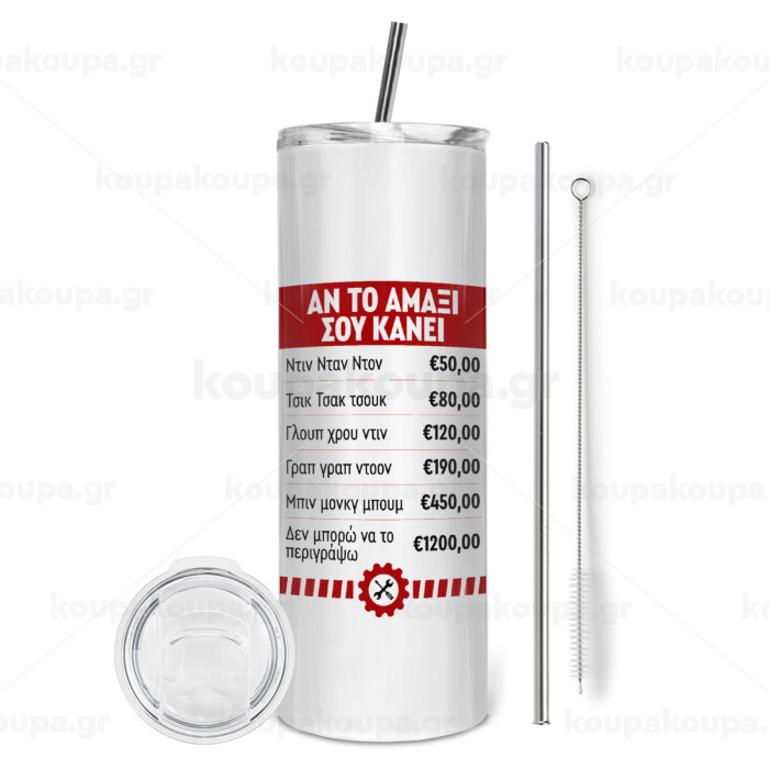 Annoying Noise in Car, Tumbler ποτήρι θερμό από ανοξείδωτο ατσάλι 600ml, με μεταλλικό καλαμάκι & βούρτσα καθαρισμού