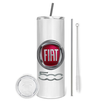 FIAT 500, Tumbler ποτήρι θερμό από ανοξείδωτο ατσάλι 600ml, με μεταλλικό καλαμάκι & βούρτσα καθαρισμού