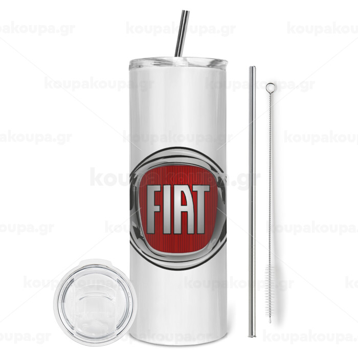 FIAT, Tumbler ποτήρι θερμό από ανοξείδωτο ατσάλι 600ml, με μεταλλικό καλαμάκι & βούρτσα καθαρισμού