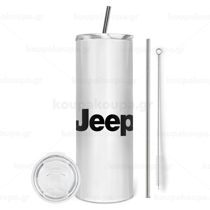 Jeep, Tumbler ποτήρι θερμό από ανοξείδωτο ατσάλι 600ml, με μεταλλικό καλαμάκι & βούρτσα καθαρισμού