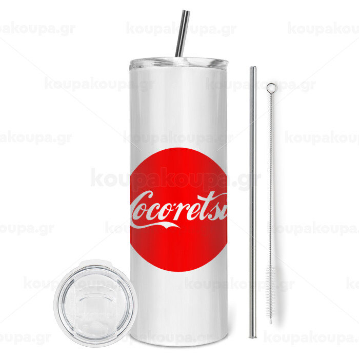 Cocoretsi, Tumbler ποτήρι θερμό από ανοξείδωτο ατσάλι 600ml, με μεταλλικό καλαμάκι & βούρτσα καθαρισμού