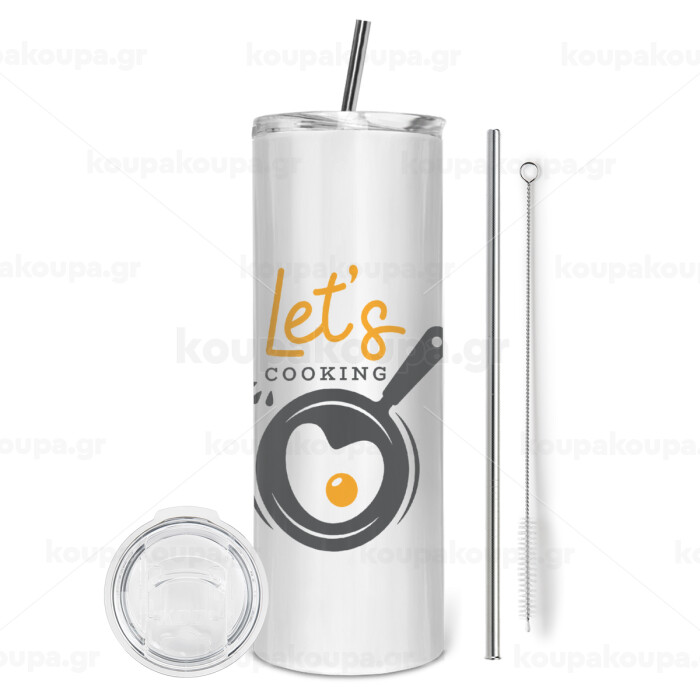 Let's cooking, Tumbler ποτήρι θερμό από ανοξείδωτο ατσάλι 600ml, με μεταλλικό καλαμάκι & βούρτσα καθαρισμού
