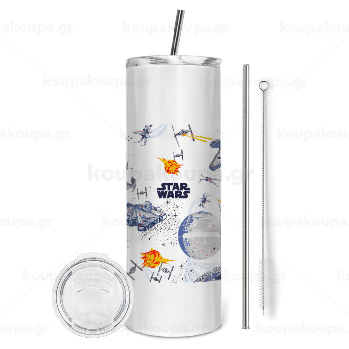 Ο πόλεμος των άστρων, Tumbler ποτήρι θερμό από ανοξείδωτο ατσάλι 600ml, με μεταλλικό καλαμάκι & βούρτσα καθαρισμού