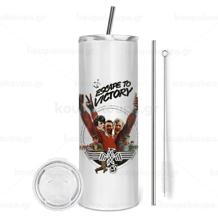 Escape to victory, Tumbler ποτήρι θερμό από ανοξείδωτο ατσάλι 600ml, με μεταλλικό καλαμάκι & βούρτσα καθαρισμού