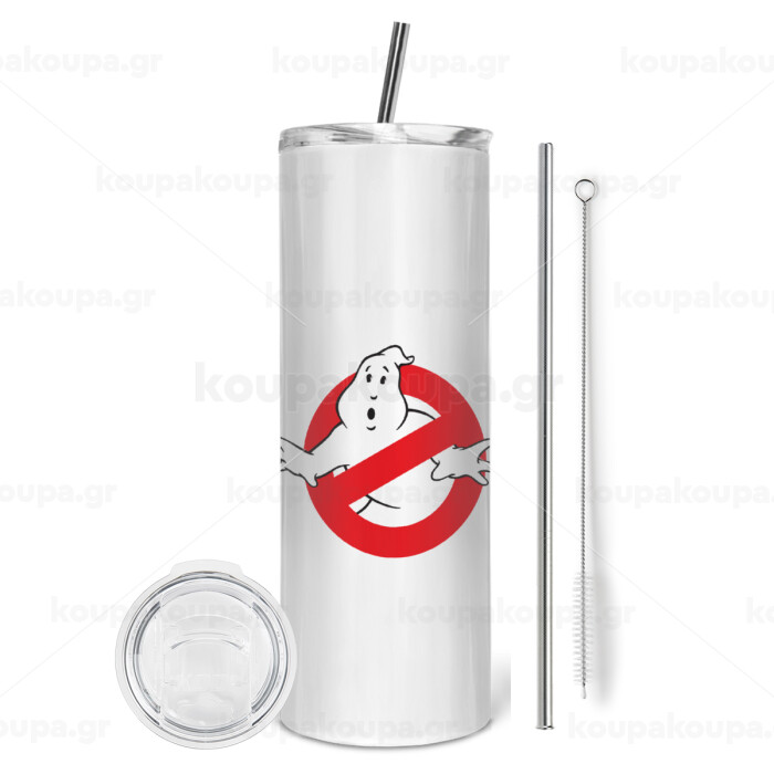 The Ghostbusters, Tumbler ποτήρι θερμό από ανοξείδωτο ατσάλι 600ml, με μεταλλικό καλαμάκι & βούρτσα καθαρισμού