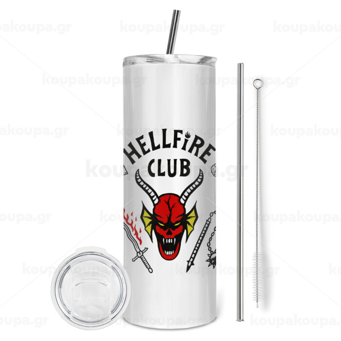 Hellfire CLub, Stranger Things, Tumbler ποτήρι θερμό από ανοξείδωτο ατσάλι 600ml, με μεταλλικό καλαμάκι & βούρτσα καθαρισμού
